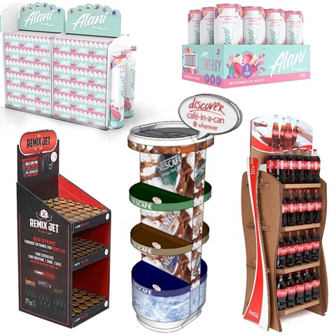 슈퍼마켓 골판지 디스플레이 스탠드 음식 간식 사탕 음료 컵 병 선물 판촉 디스플레이 골판지 바닥 디스플레이