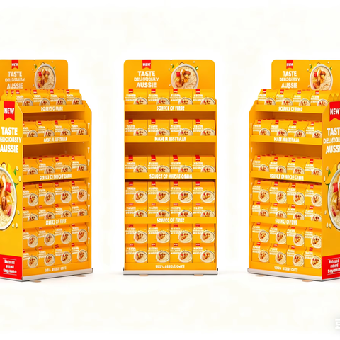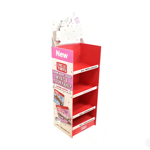 Personalizado Portátil Supermercado Varejo Snacks Display Stand Verniz Acabamento Papel Papelão Ondulado Floor Standing Batata