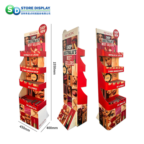 Tienda minorista Perfume Pestañas Lápiz labial Maquillaje Papel Cartón Estante de exhibición Soporte de piso Cosméticos Soporte de exhibición de cartón